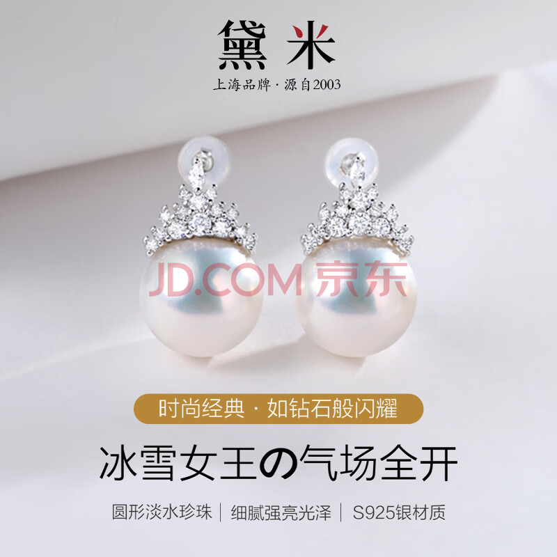 商品相册:黛米S925银圆珠11-12mm冰雪女王系列淡水珍珠耳钉生日礼物送老婆爱人第