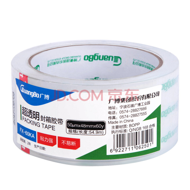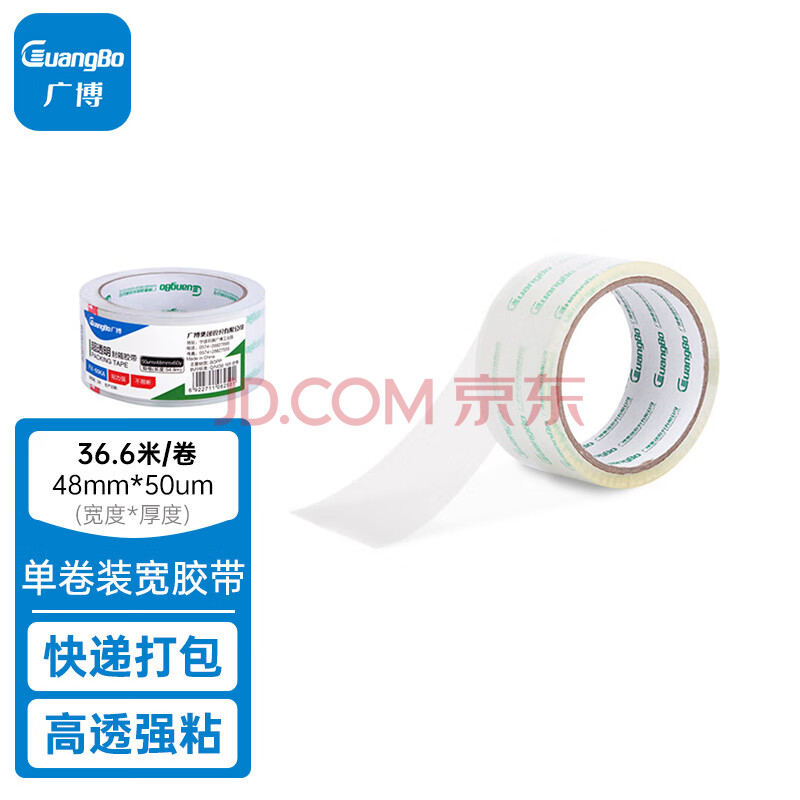 商品相册:广博防风(GuangBo)高透明胶带48mm*40y*50μm 36.6米/卷宽胶带封箱胶布办公文具FX-66KA第