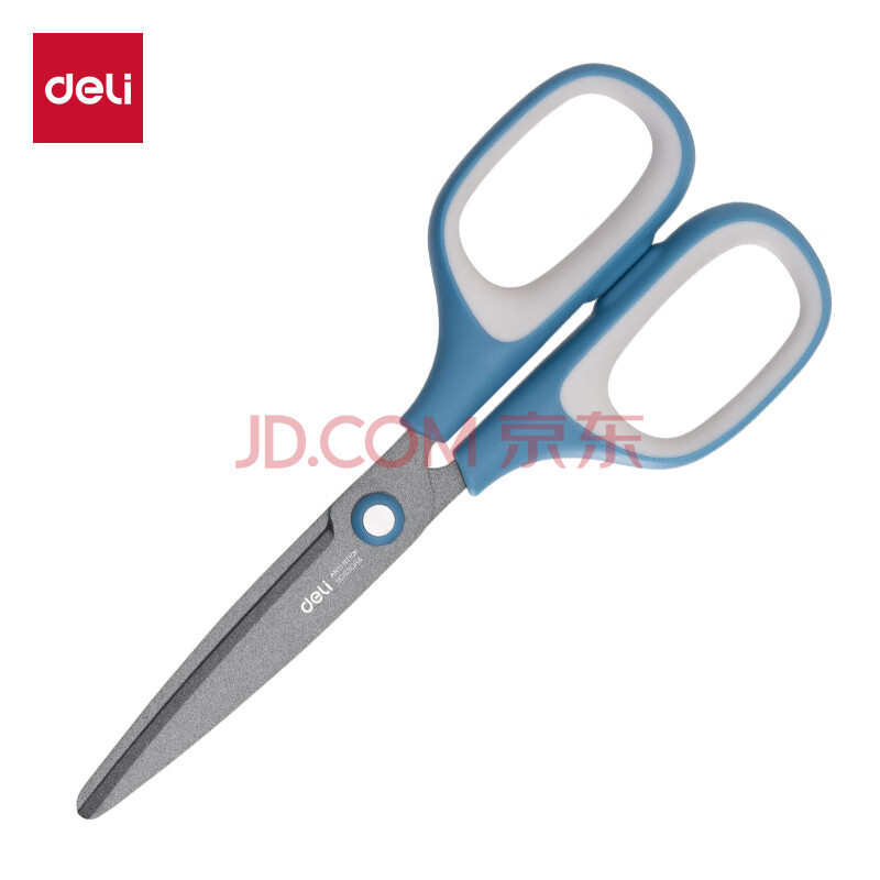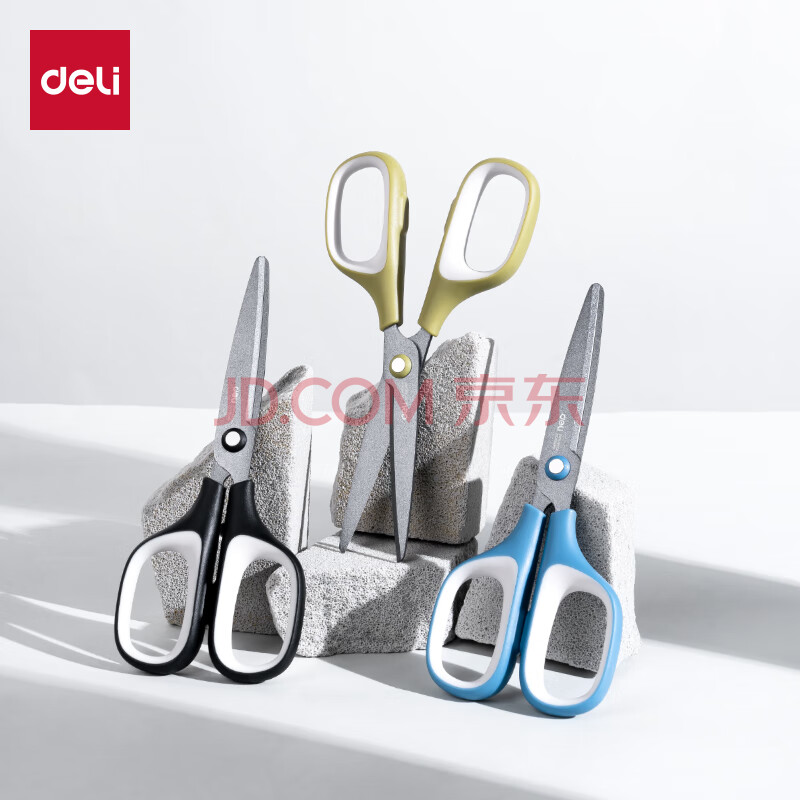 商品相册:得力175mm特氟龙防粘剪刀 软胶手柄 家用生活剪子 手工剪纸开箱刀 办公用品 新老品混发6055第