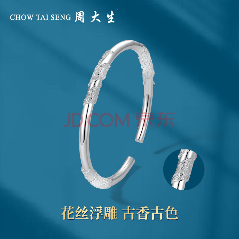 商品相册:周大生足银手镯S990实心开口银手镯繁花送女友约31±1g 生日礼物第1张/共3