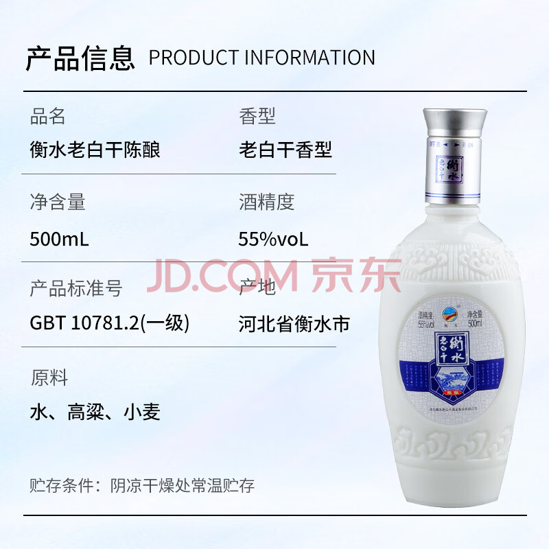 商品相册:衡水老白干 55度陈酿 高度酒 老白干香型白酒 整箱 500mL*6瓶第