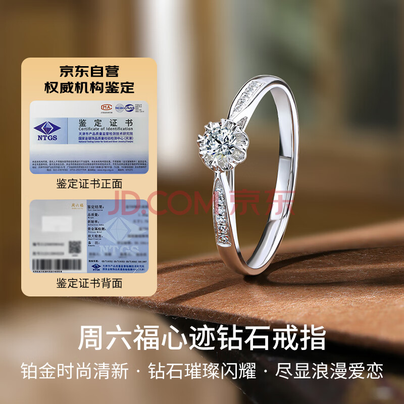 商品相册:周六福诚爱铂金钻石戒指W0210509 【共12分】主钻约9分 16号生日礼物第