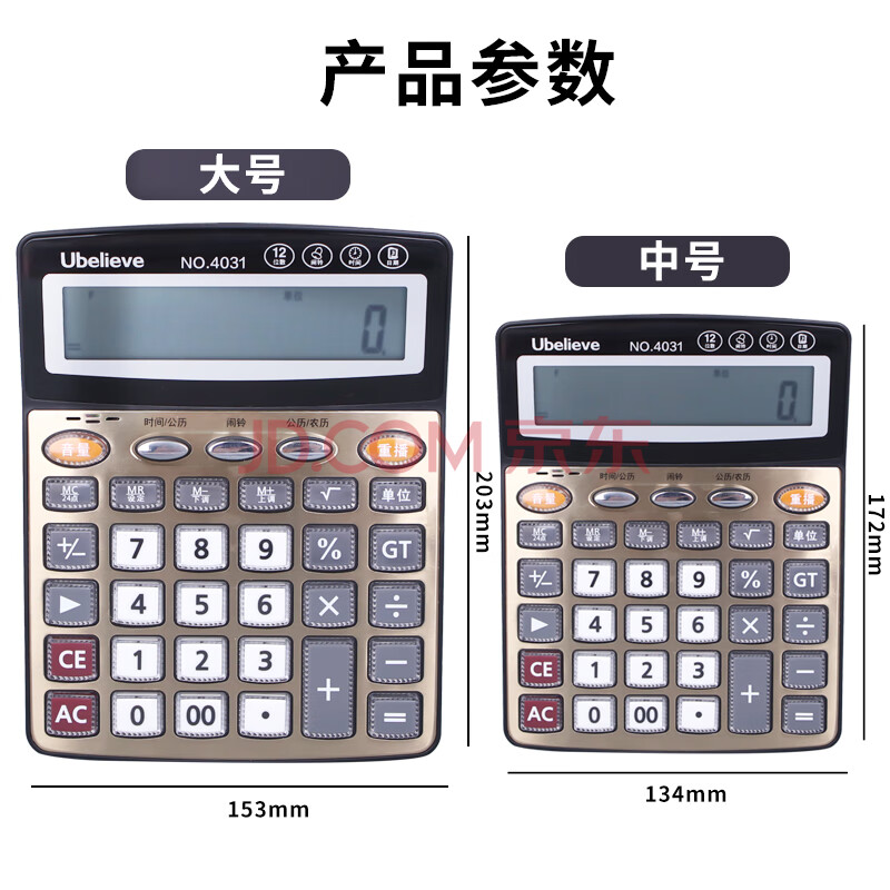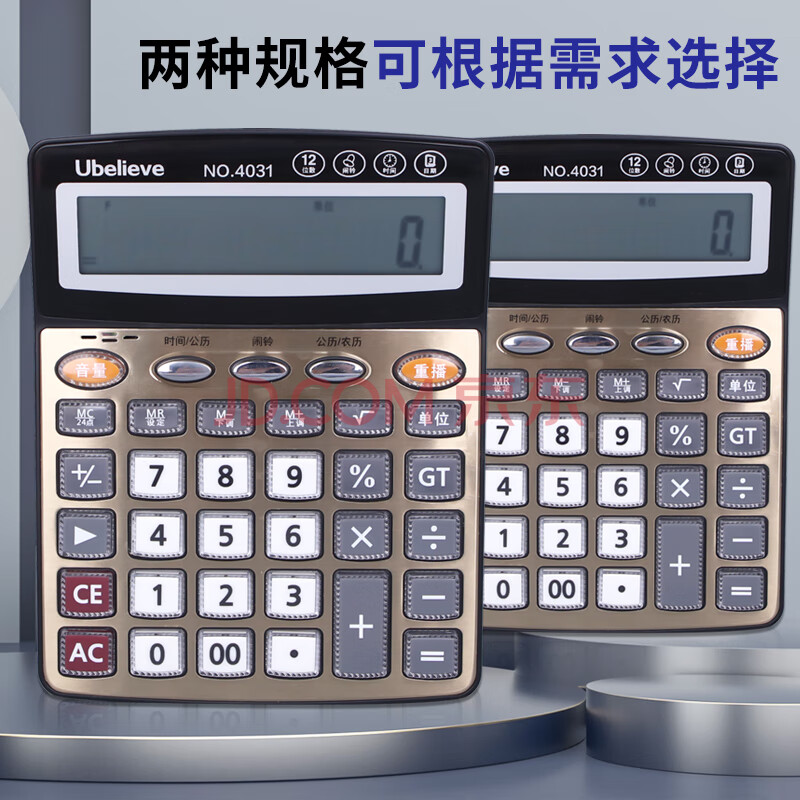 商品相册:优必利 桌面办公计算器 财务家用计算机 12位大屏幕语音4031第
