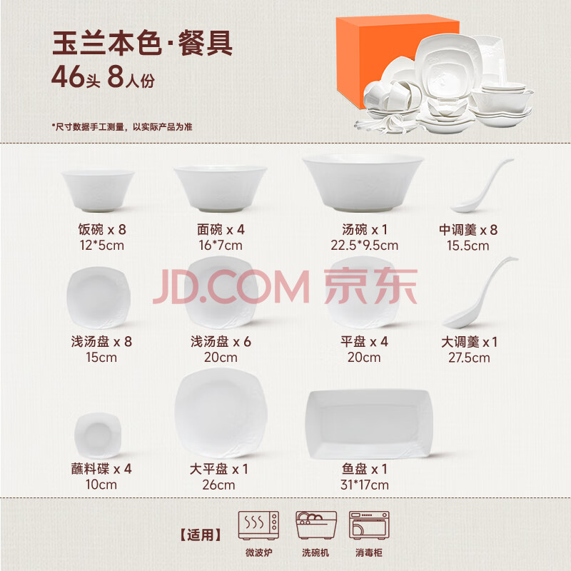 商品相册:玛戈隆特骨瓷餐具碗碟套装陶瓷纯白浮雕玉兰本色8人份46头 第1张/共4