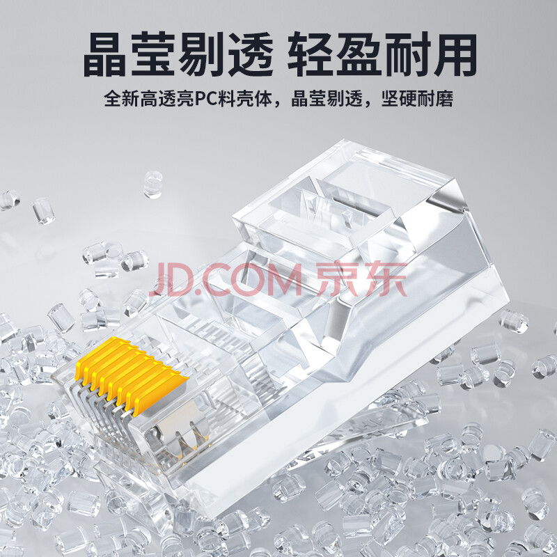 商品相册:山泽 超五类网络水晶头 8P8C镀金电脑网络接头 RJ45网线接头CAT5e水晶头 100个 FV-5100第
