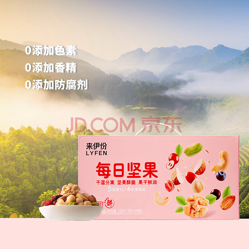 商品相册:来伊份每日坚果锁鲜装750g/30袋 开心果混合坚果礼盒零食礼包生日礼品第