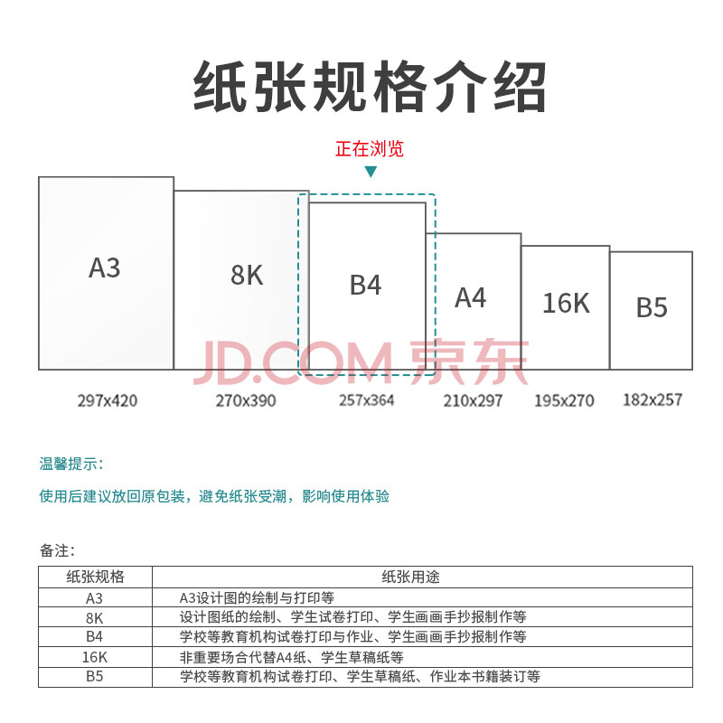 商品相册:得力(deli)B4打印纸70g500张 单包双面复印纸 学生试卷纸草稿纸 非A4规格 7790【行业热销】第