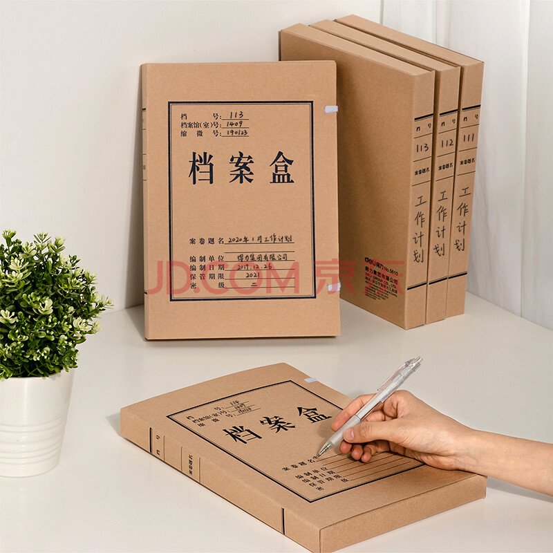 商品相册:得力(deli)10只30mm340g无酸牛皮纸文件盒 加厚塑料财会档案盒 考试收纳 5610第