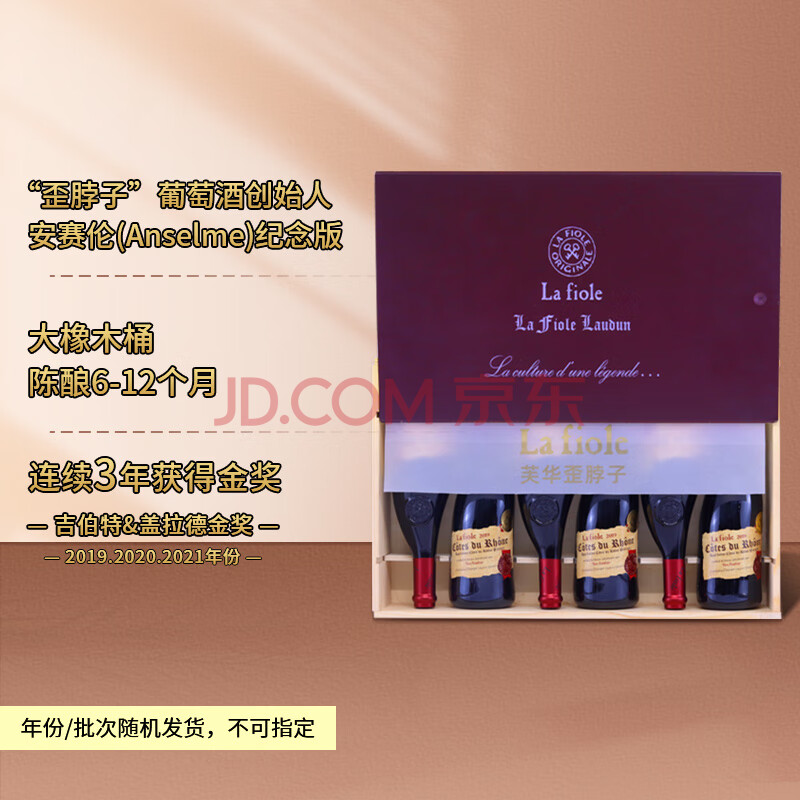 商品相册:芙华(La Fiole)歪脖子红酒 法国原瓶进口 安赛伦干红葡萄酒 750ml*6支 红酒礼盒第