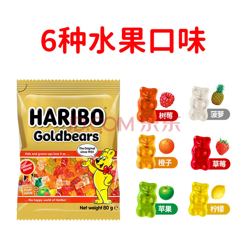 商品相册:哈瑞宝(Haribo)土耳其进口 果汁小熊软糖80g 儿童糖果 休闲零食QQ糖第1张/共8