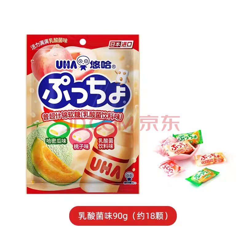 商品相册:悠哈 普超什锦软糖 90g 乳酸菌味 日本进口 休闲零食糖果 夹心qq糖第