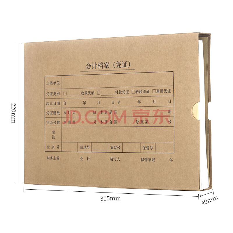 商品相册:西玛A4凭证盒 单封口进口674g牛卡纸 305*220*40mm 5个/包 a4记账凭证纸会计档案凭证盒SZ600335第