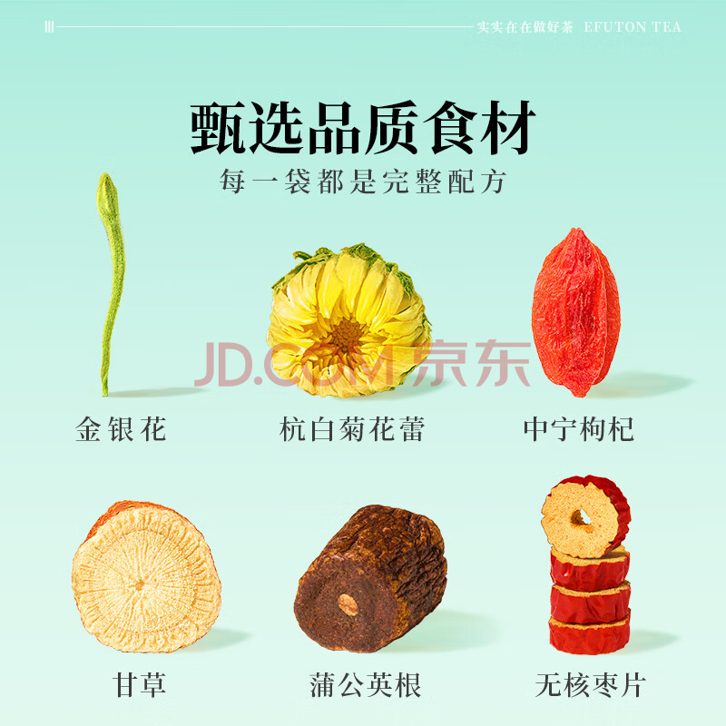 商品相册:艺福堂金银花枸杞菊花茶140g 蒲公英甘草枣片五宝茶养生可搭罗汉果第