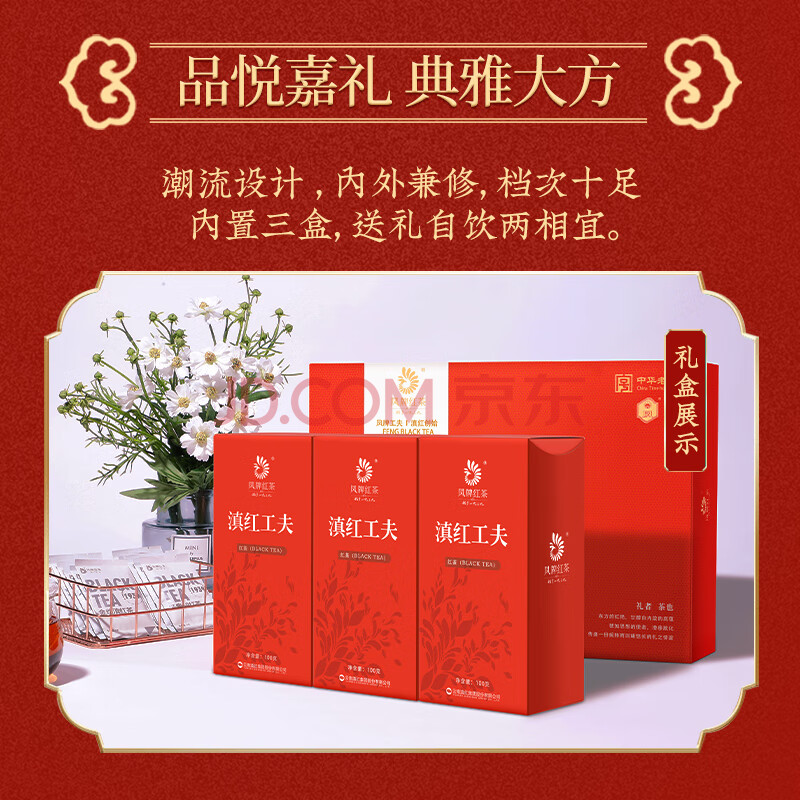 商品相册:凤牌 红茶 云南滇红工夫礼盒装300g 茶叶 礼品送人 年货节礼盒第