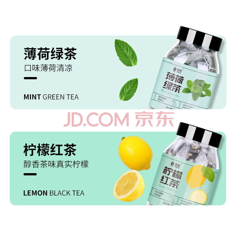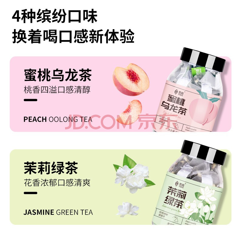 商品相册:艺佰 花茶果茶包120包茉莉花茶蜜桃乌龙茶柠檬红茶薄荷绿茶可冷泡茶第