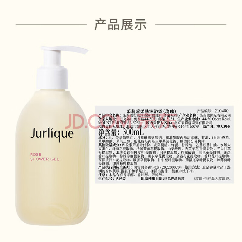 商品相册:茱莉蔻(Jurlique)玫瑰柔肤沐浴露300ml 香氛沐浴乳 清爽滋润 深层清洁第