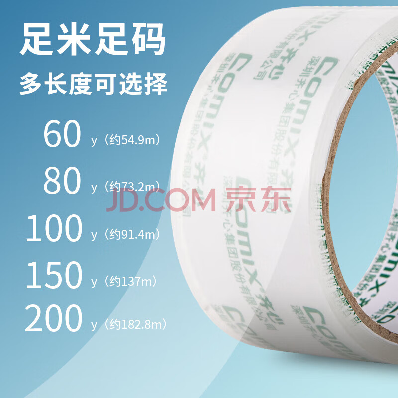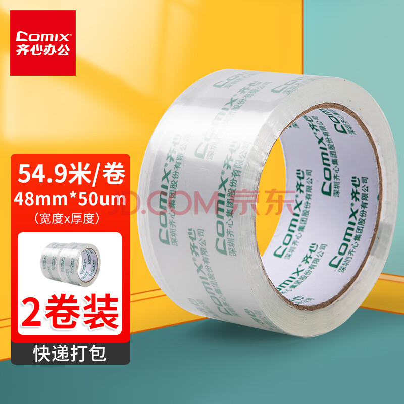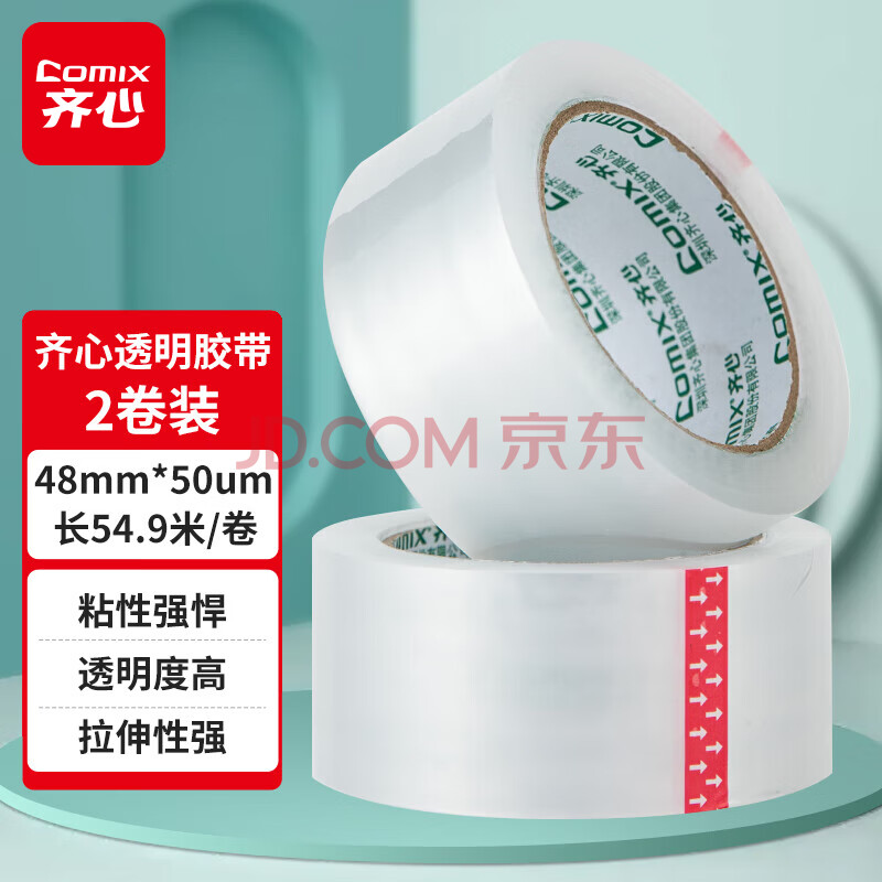 商品相册:齐心(COMIX)透明胶带/宽胶带/封箱胶带高透明打包胶带胶布2卷 宽48mm*60y*50um长54.9米/卷 JT4806-2第