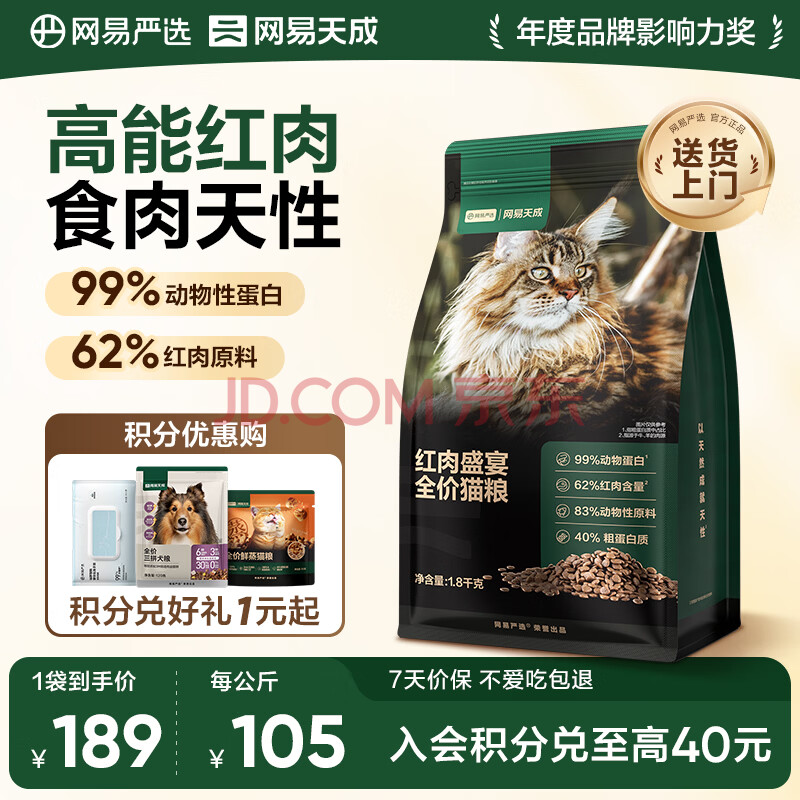 商品相册:网易严选全价无谷红肉盛宴猫粮 主粮成幼猫粮进口牛羊肉 增肌长肉1.8kg第