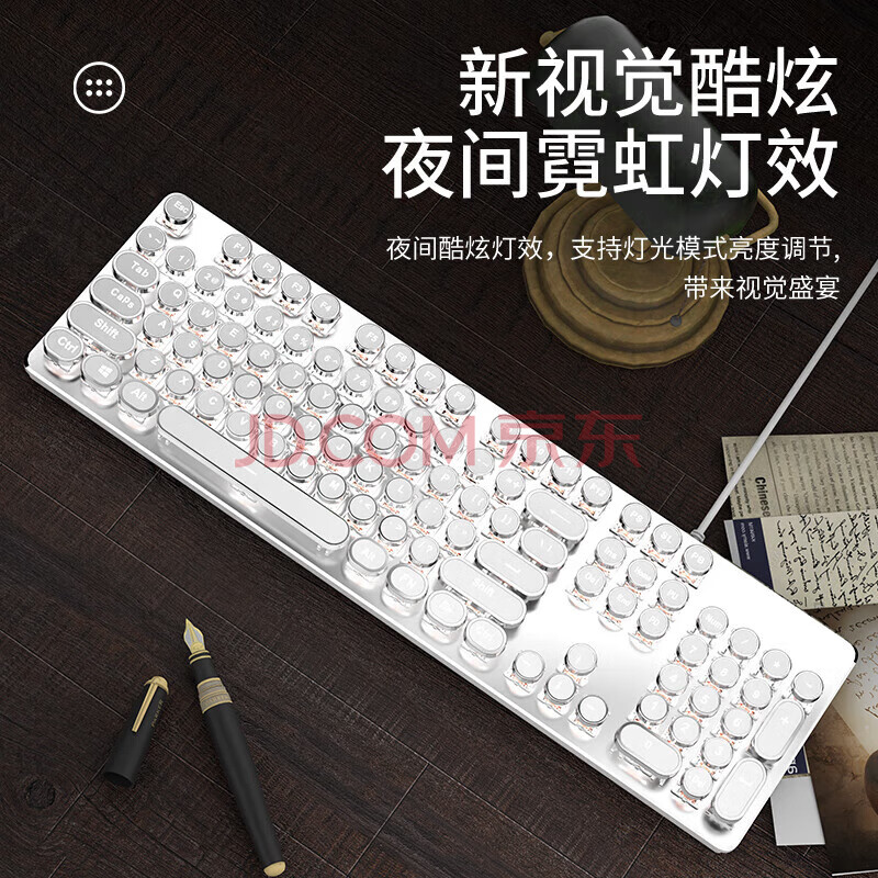 商品相册:前行者(EWEADN)TK100朋克机械键盘有线键盘电竞游戏台式电脑笔记本外接办公打字复古外设104键 白色白光青轴第