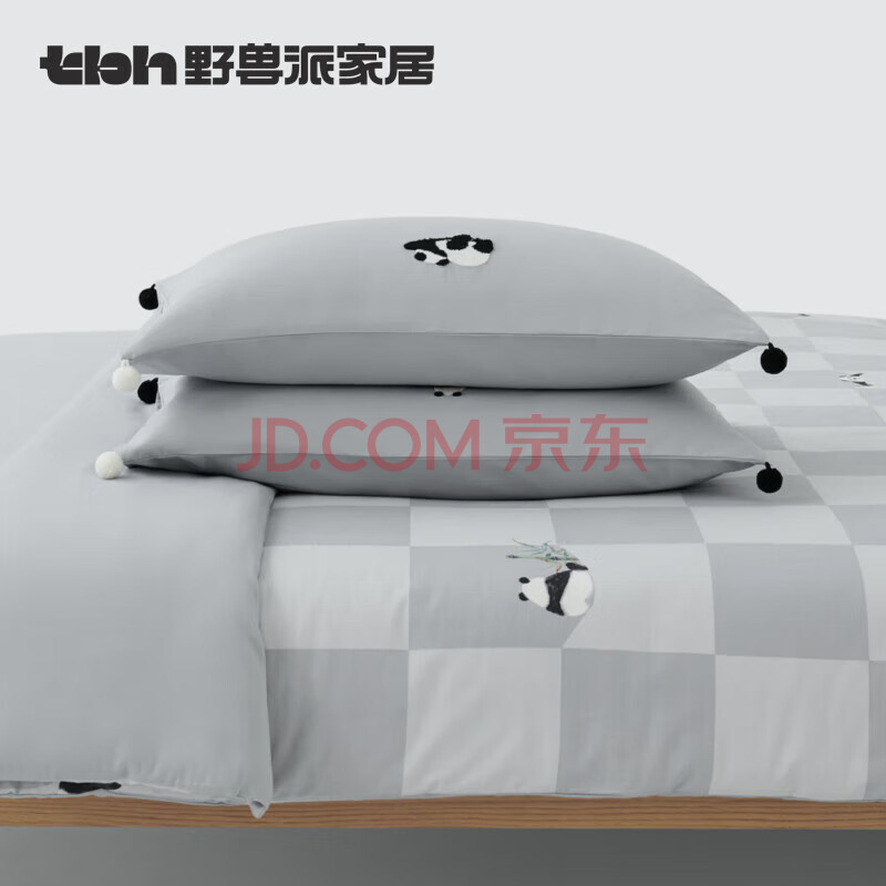 商品相册:野兽派家居(tbh)熊猫嘭嘭磨毛床单被套纯棉套件不起球全棉套件 1.2米床150x210cm送人礼物第