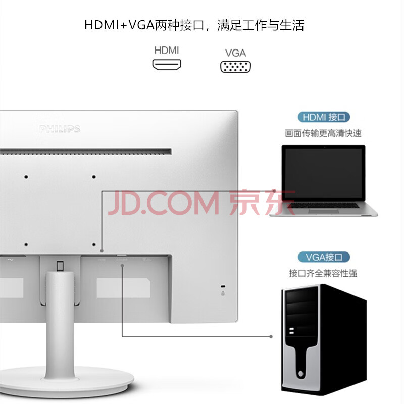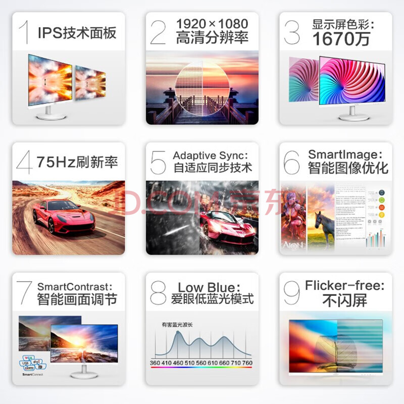 商品相册:飞利浦 23.8英寸 IPS屏 全高清 75Hz 低蓝光无频闪 壁挂 网课 办公显示器 电脑显示屏 241V8W第