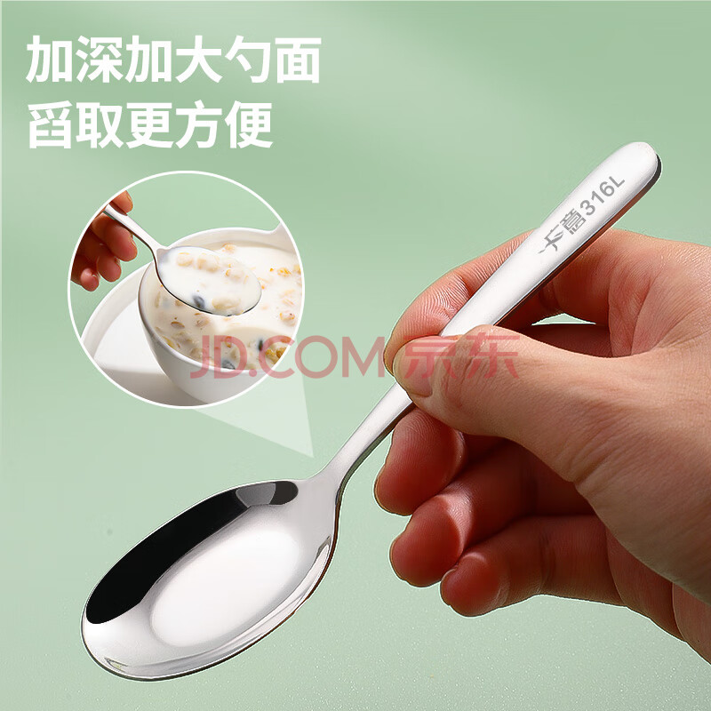 商品相册:广意勺子 316L不锈钢汤勺汤匙加大平底勺餐勺儿童勺2支装 GY8550第