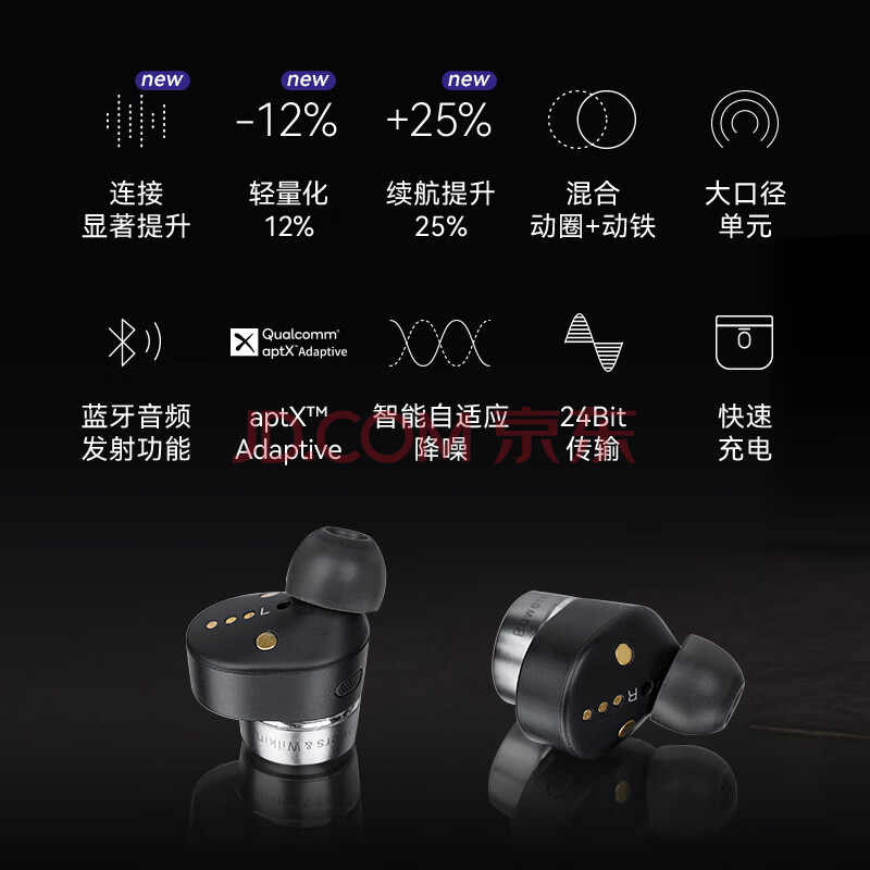 商品相册:宝华韦健Pi7s2 智能主动降噪真无线蓝牙耳机 B&W Pi7二代 hifi音乐运动入耳式双11推荐 苍墨黑第