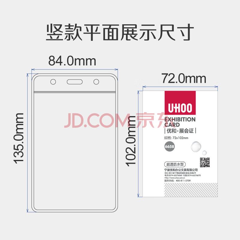 商品相册:优和(UHOO)PVC展会证竖式透明证件套工作牌卡套工牌吊牌挂牌胸牌卡套胸卡出入证学员证饭卡工卡6658第