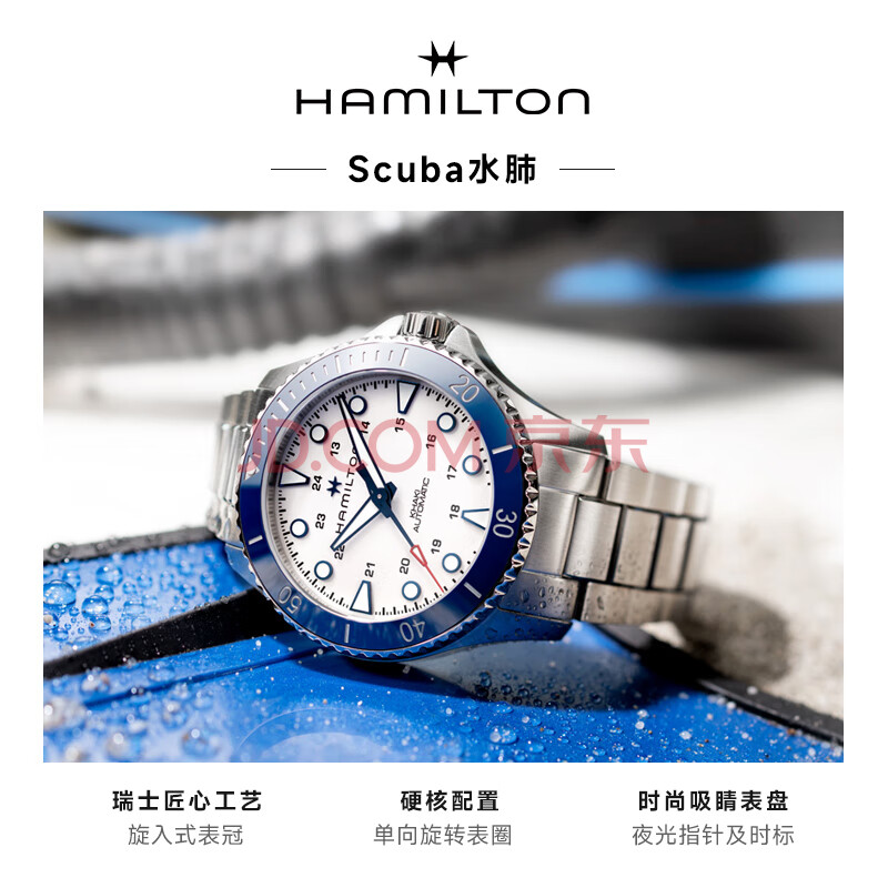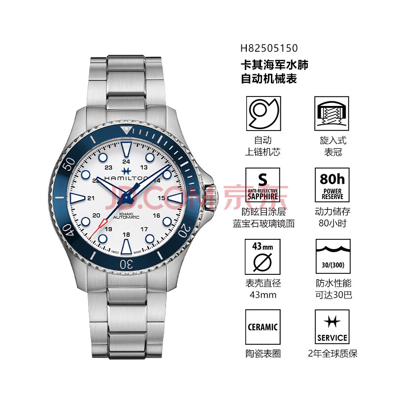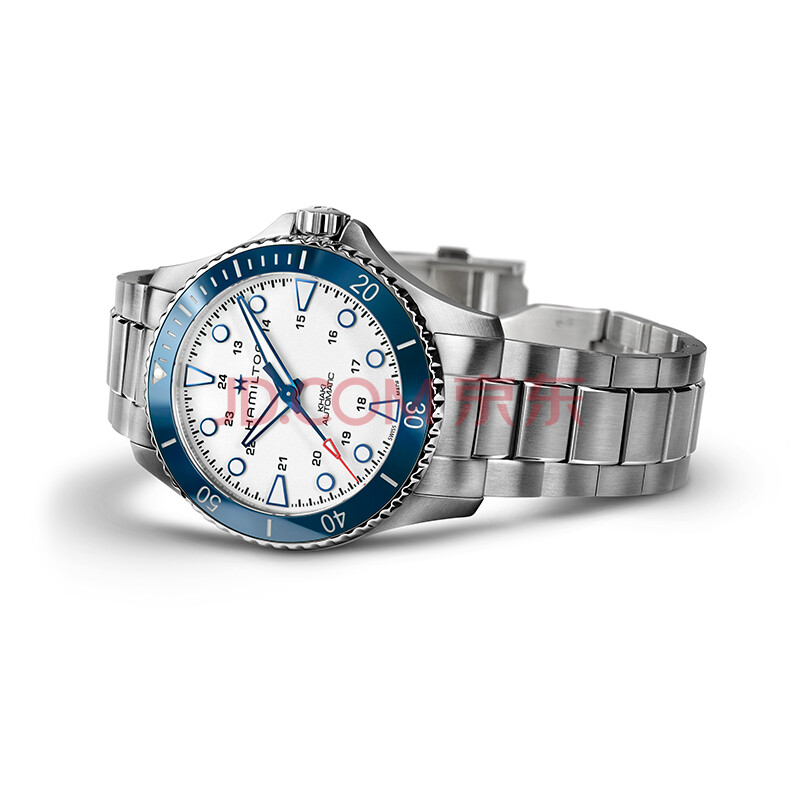 商品相册:汉米尔顿(Hamilton)汉密尔顿手表男士瑞士机械潜水表 卡其海军水肺43白盘钢带腕表第