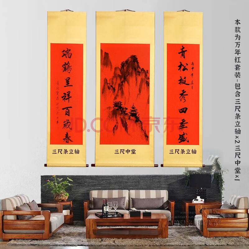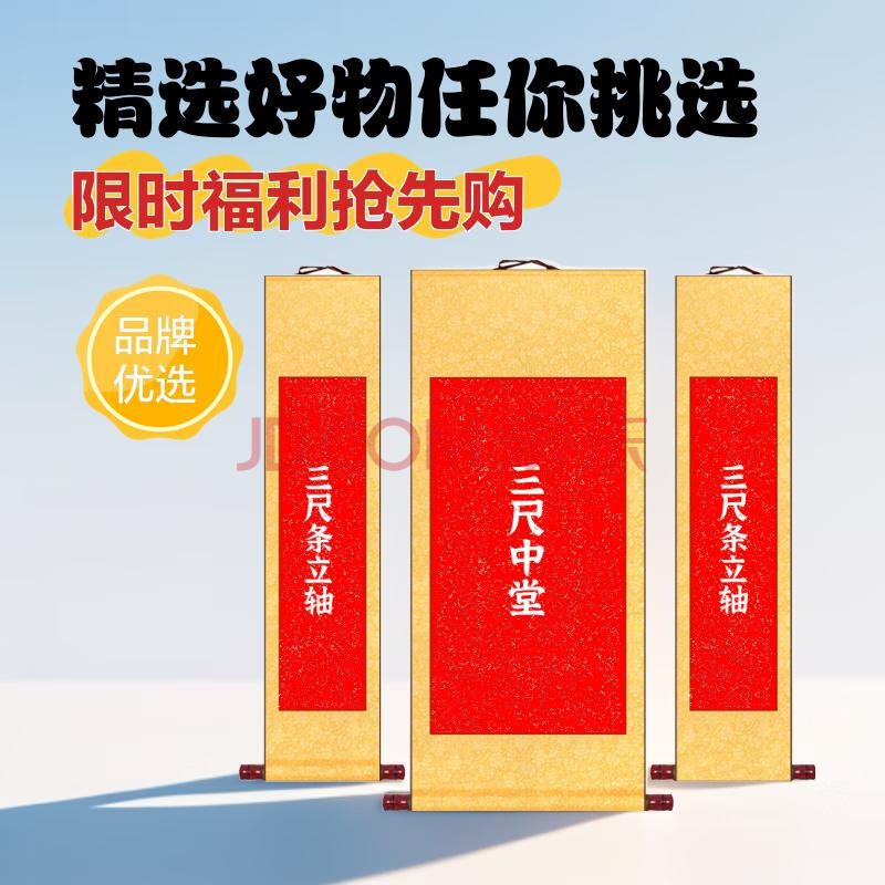 商品相册:一海堂文化 宣纸卷轴 文房画轴空白卷轴挂轴高温全绫精装裱宣纸书法作品纸空白纸 万年红三尺中堂套装第