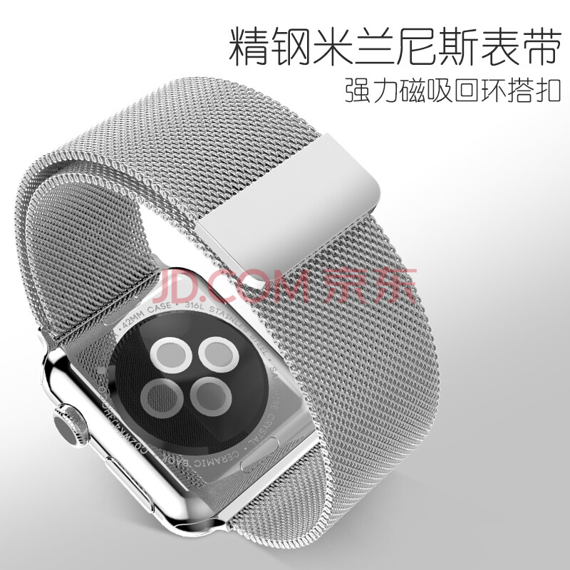 商品相册:博沃尼克苹果手表手表apple iwatch米兰尼斯金属磁吸腕带S7/6/5/4/3银色第