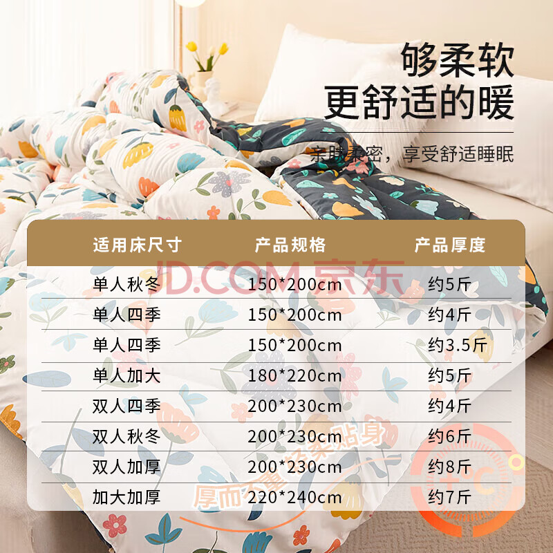 商品相册:雅鹿·自由自在 A类抗菌纤维被子被芯单人秋冬天季被褥棉被冬天150x200cm5斤繁花第