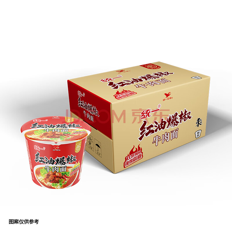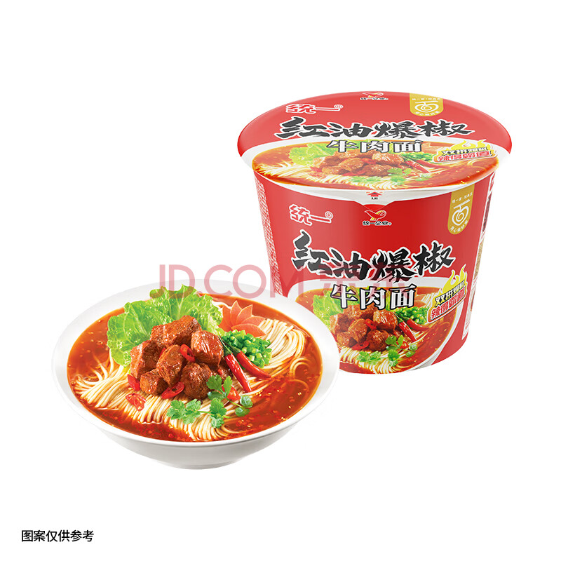 商品相册:统一来一桶 红油爆椒牛肉面 桶面 105g*12桶 整箱装无辣不欢速食泡面 第