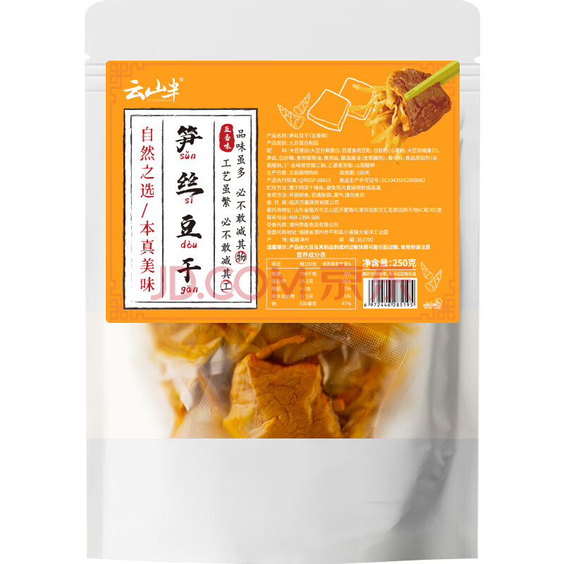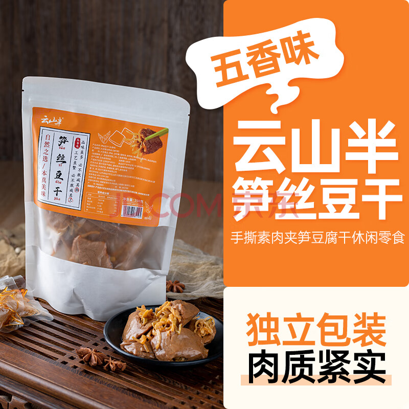 商品相册:云山半 笋丝豆干250g 五香卤味手撕素肉 夹笋豆干夹肉 解馋零食独立包第