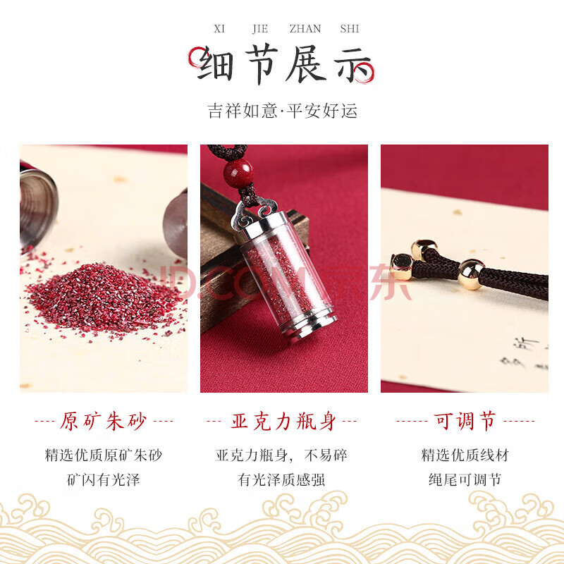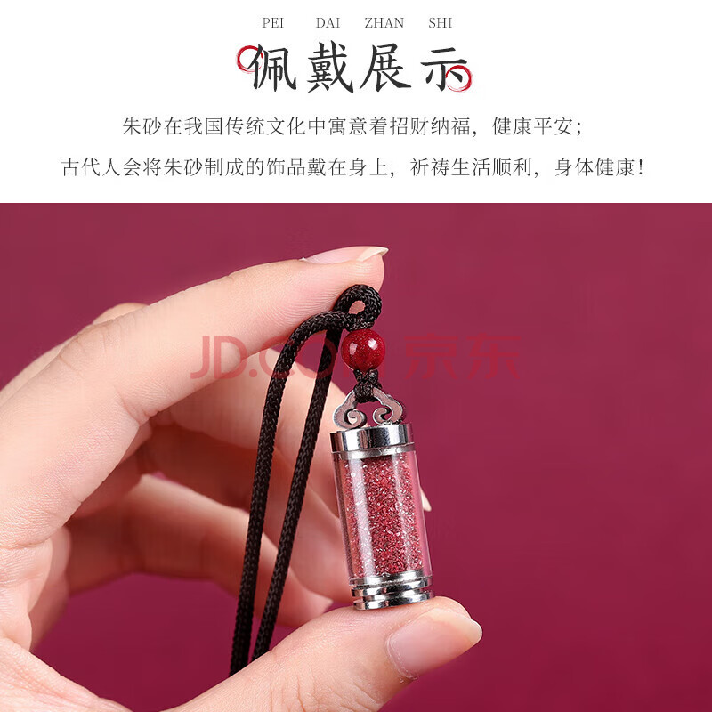 商品相册:石传百世朱砂吊坠原矿朱砂粉嘎乌盒瓶项链随身挂件护身符男女士款生日礼物第