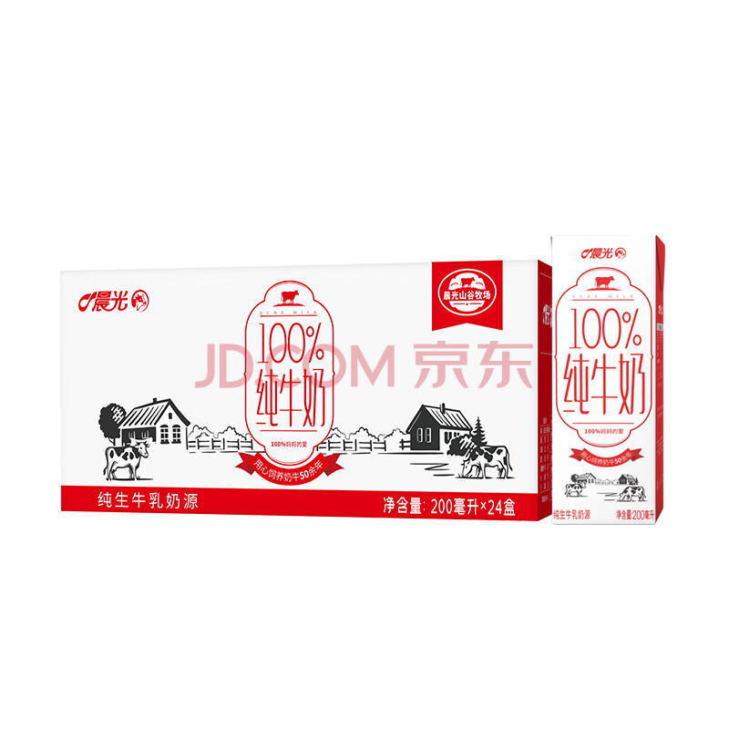 商品相册:晨光100%生牛乳纯牛奶全脂早餐纯奶早餐牛奶 200ml*24盒整箱 年货礼盒第