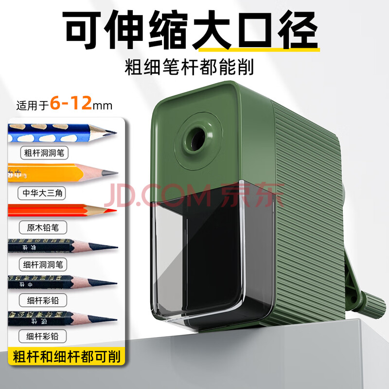 商品相册:宗茂儿童削笔器手摇卷笔刀 升级大口径加粗卷笔器 粗细可调耐用铅笔转笔刀 小学生学习考试文具用品027绿色第
