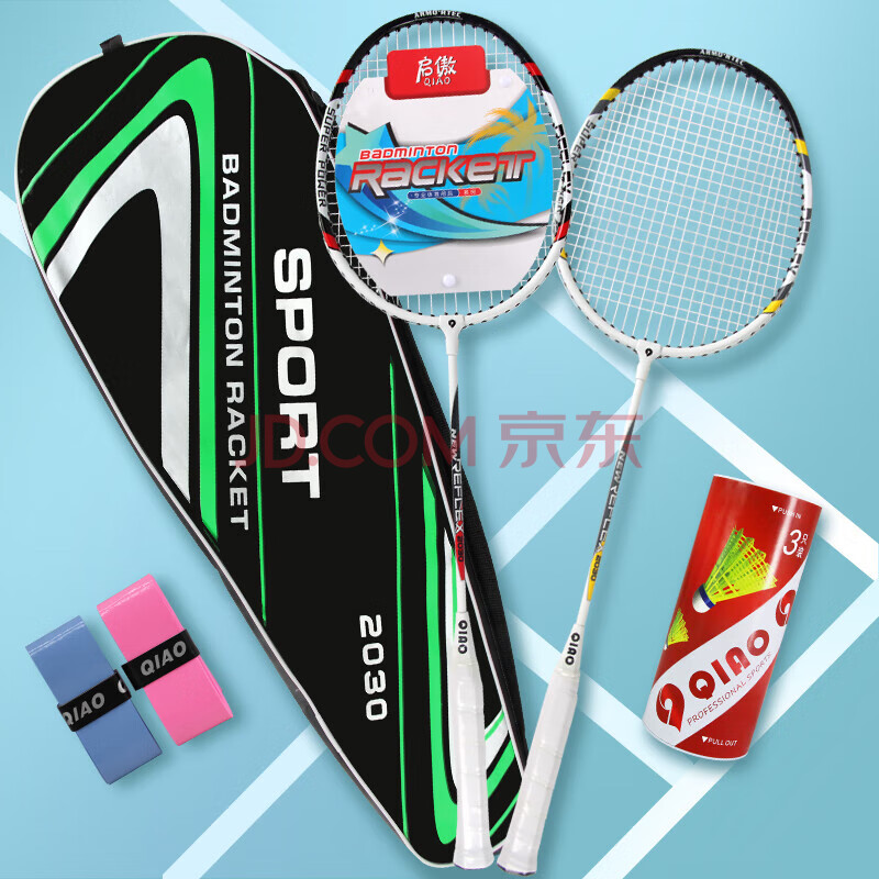 商品相册:启傲(QIAO)羽毛球拍对拍初学入门羽拍套装双拍训练合金款2030(附大拍包1个手胶2尼龙球3个)第