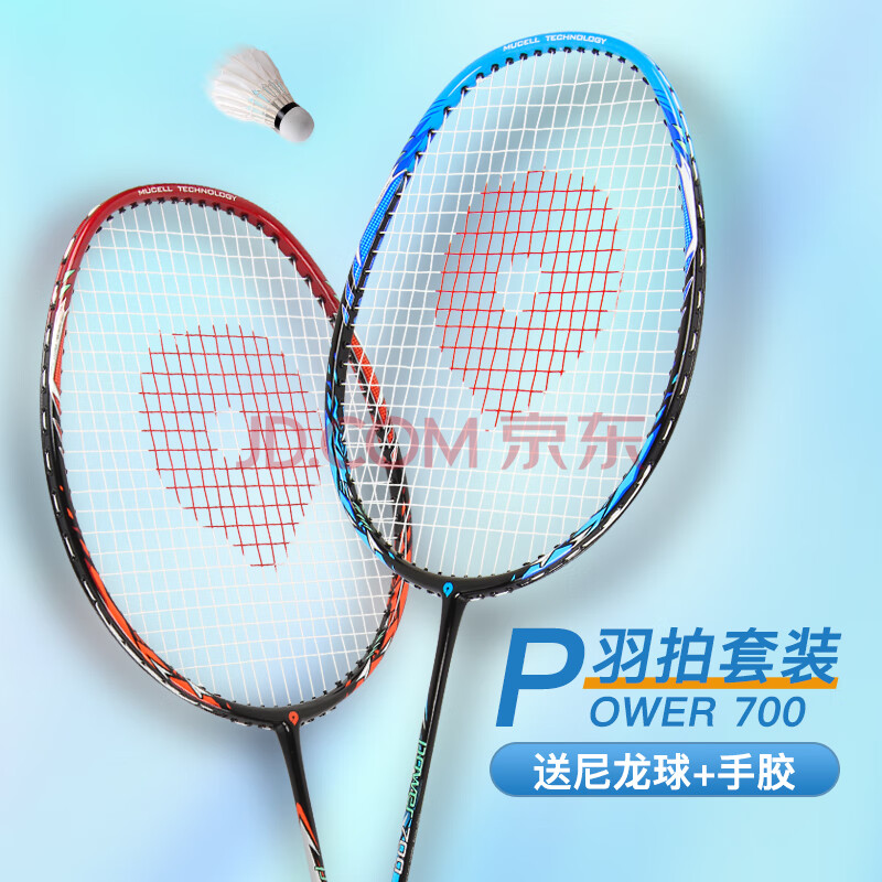 商品相册:启傲(QIAO)羽毛球拍对拍套装超轻碳素双拍4U24磅Power700已穿线含拍包手胶2尼龙球3个第
