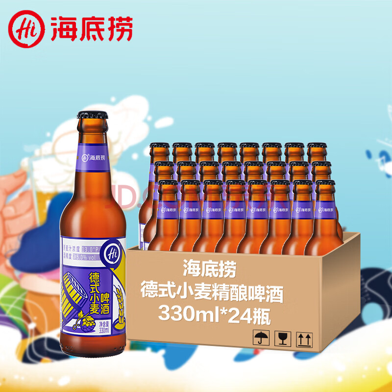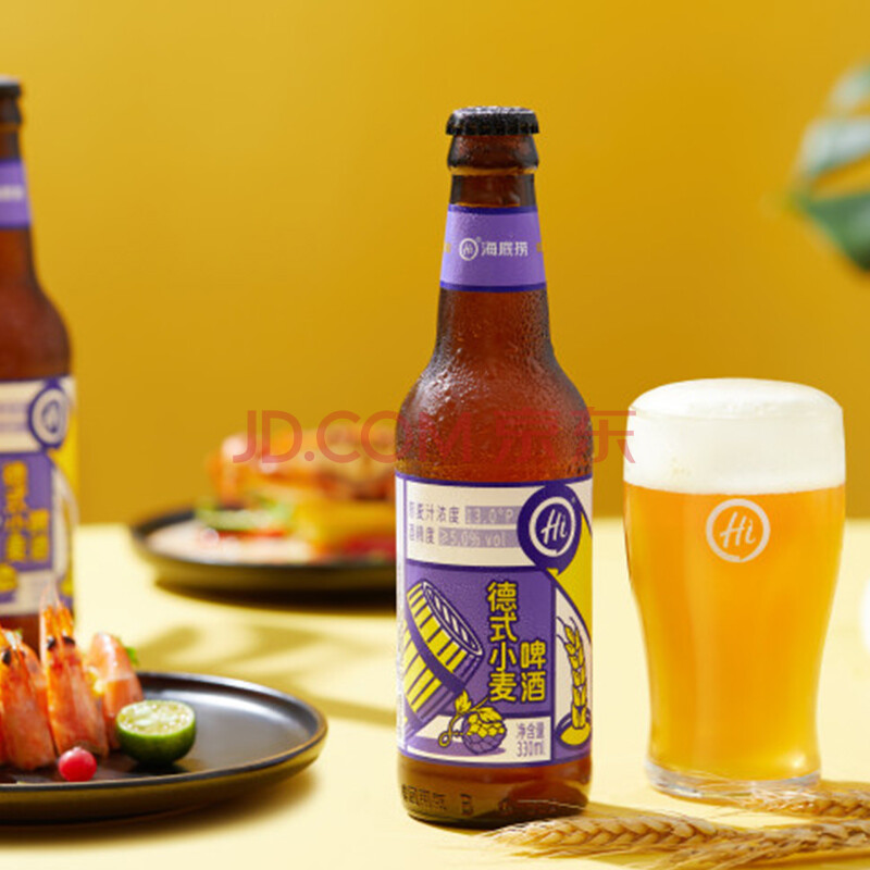 商品相册:海底捞 德式小麦 精酿啤酒 330ml*24瓶 整箱装 国产 踏春送礼第