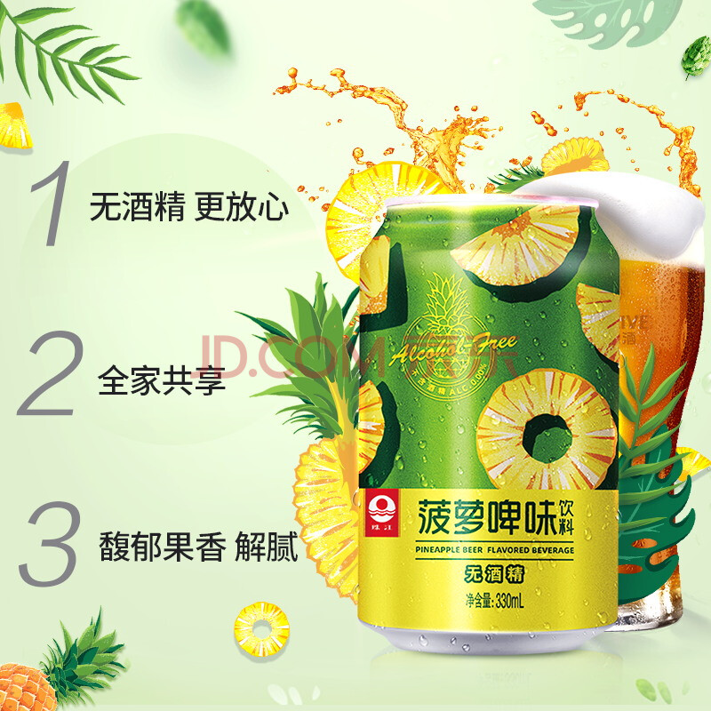 商品相册:珠江啤酒(PEARL RIVER)珠江啤酒无酒精 珠江菠萝啤 330ml*24听 整箱装 京东自营踏春送礼第