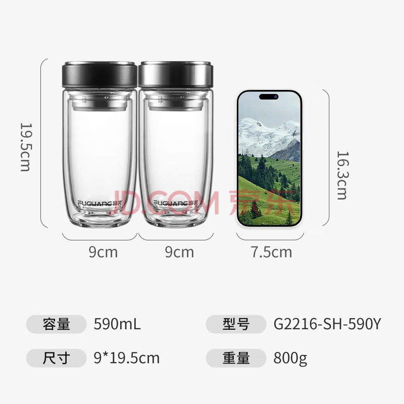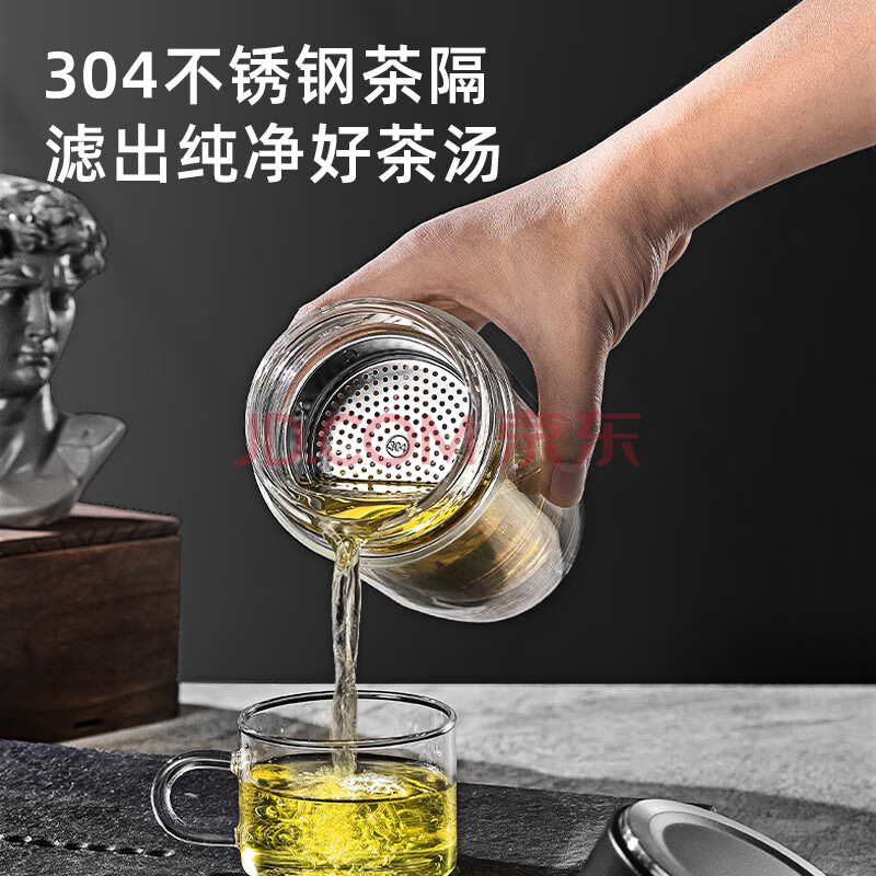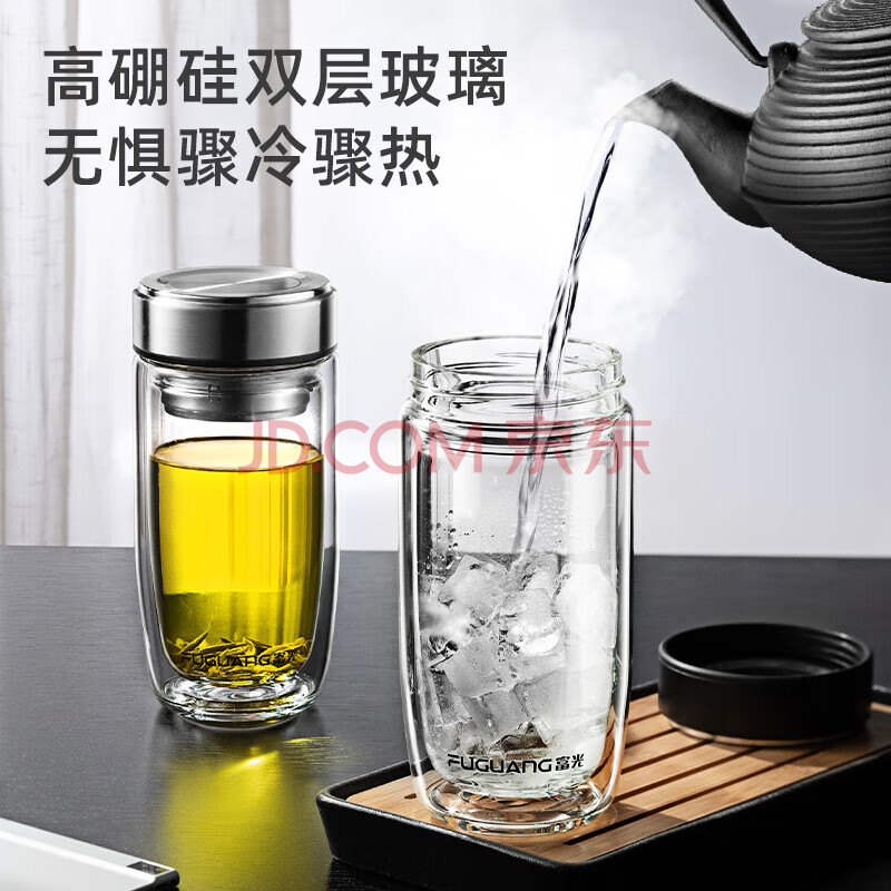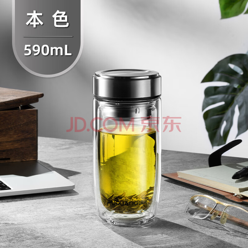商品相册:富光双层玻璃杯 高硼硅玻璃泡茶杯 大容量带茶隔水杯商务杯子男590ml第