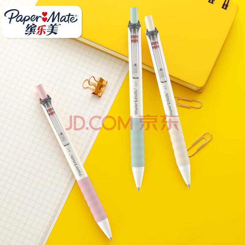 商品相册:缤乐美(Paper Mate)中性笔0.5mm速干高颜值按动式学生棉花糖系列粉绿黄笔身黑色3支装第