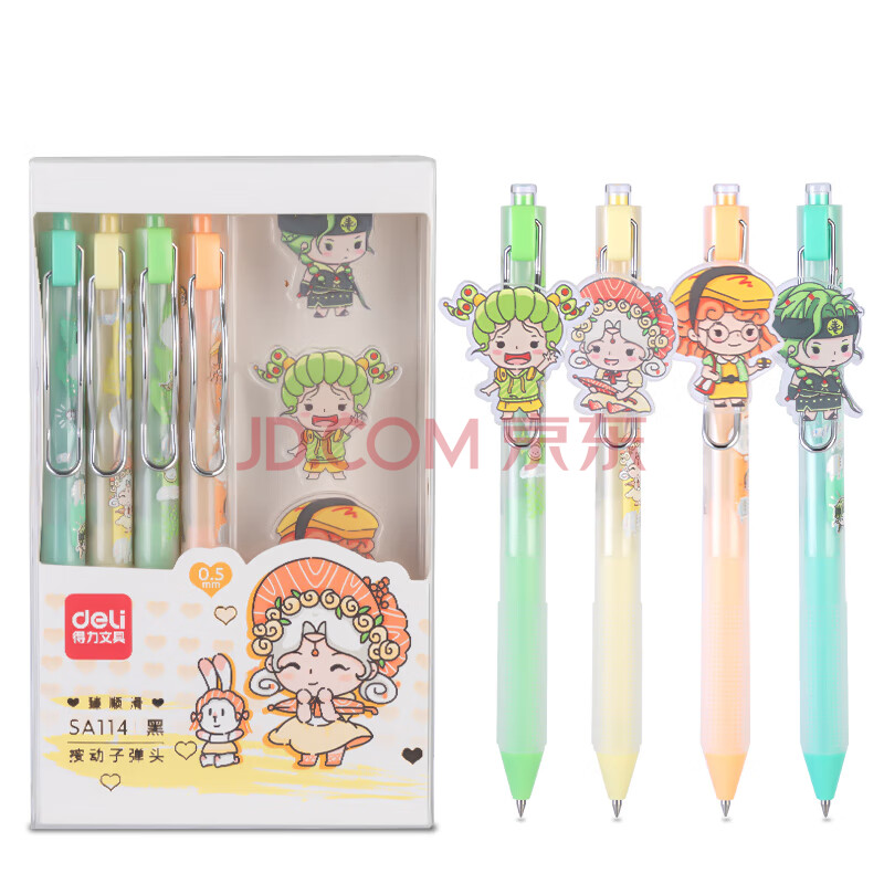 商品相册:得力(deli)【热门商品】卷卷国臻顺滑按动中性笔0.5mm子弹头 弧度收口笔头 学生文具黑色 4支/盒SA114第