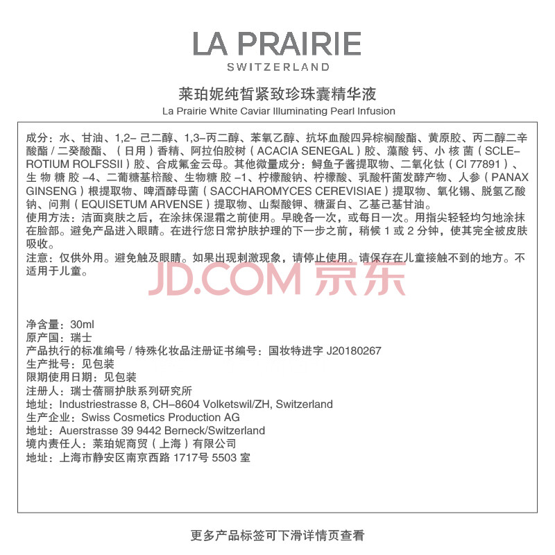 商品相册:莱珀妮(La Prairie)纯皙紧致珍珠囊精华液30ml护肤品礼盒补水提亮紧致生日礼物送女友第