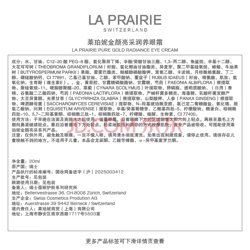 商品相册:莱珀妮(La Prairie)金颜亮采润养黄金眼霜20ml护肤礼盒滋养修护抗皱紧致生日礼物送女第