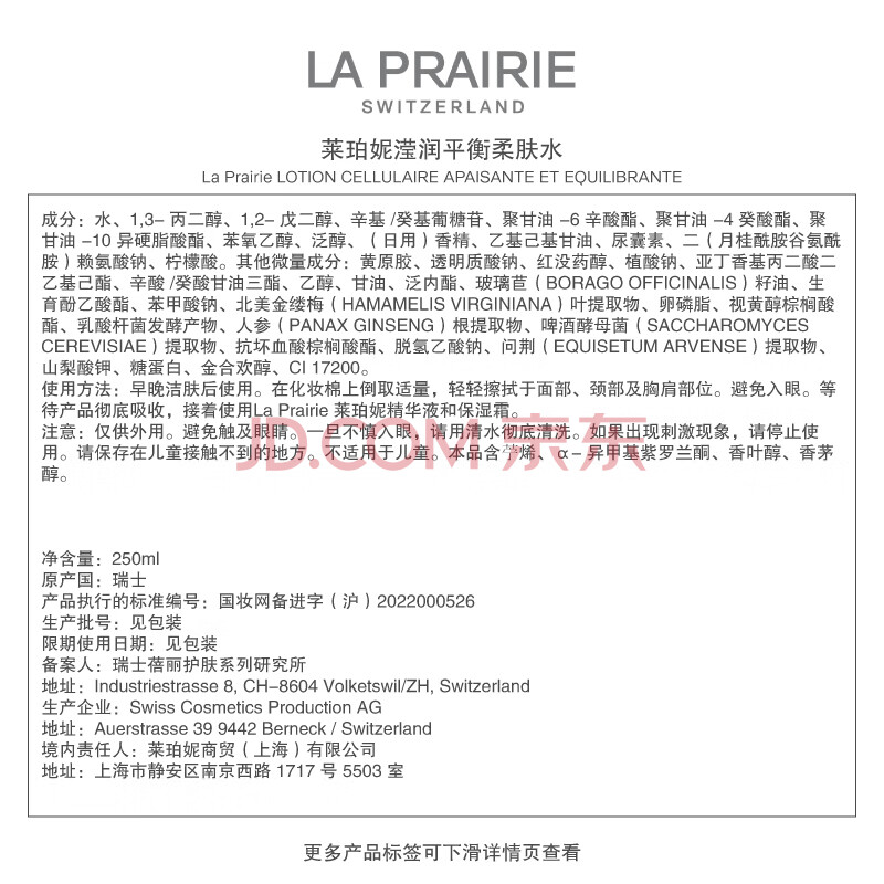 商品相册:莱珀妮(La Prairie)滢润平衡柔肤水250ml护肤品礼盒补水保湿化妆水生日礼物送女友第