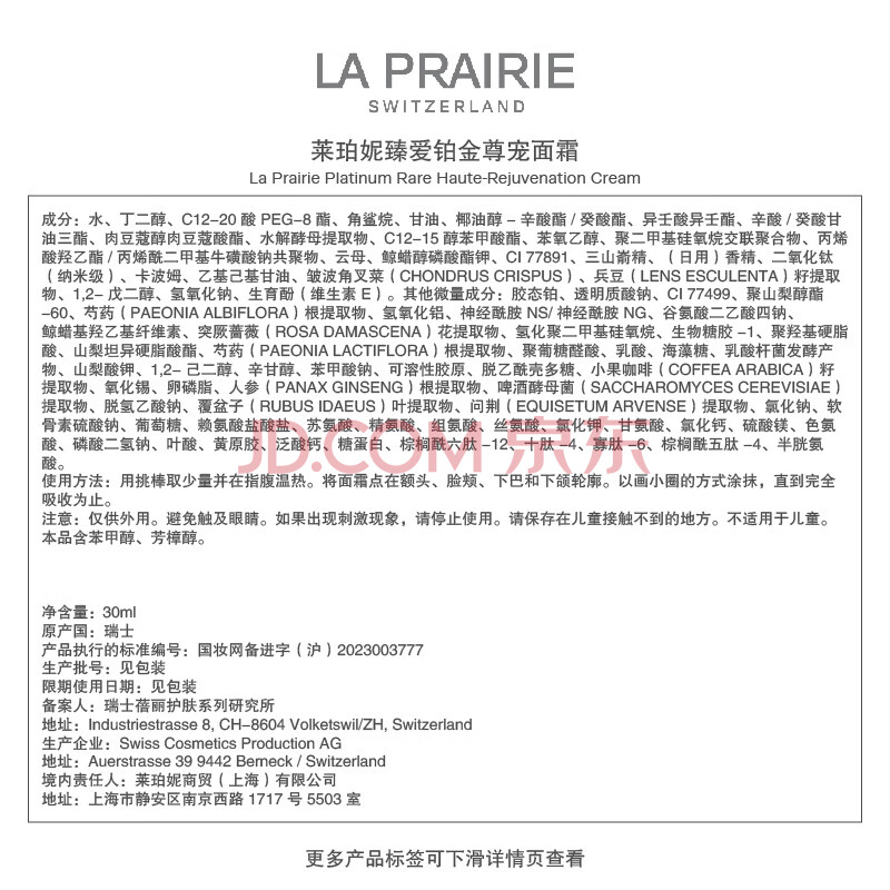 商品相册:莱珀妮(La Prairie)铂金面霜30ml面霜护肤品礼盒修护补水保湿抗皱紧致生日礼物送女友第