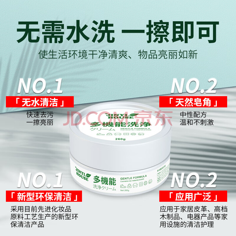 商品相册:JINYI HOUSE多功能清洁膏260g小白鞋皮革沙发皮鞋家具家电去污保养清洁剂第1张/共5