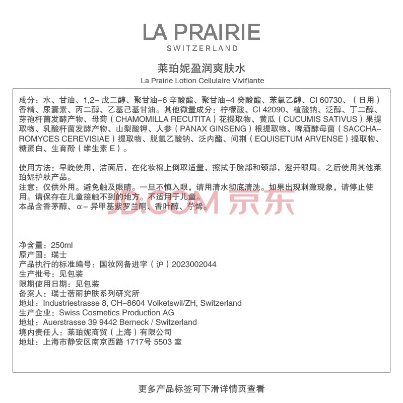 商品相册:莱珀妮(La Prairie)盈润爽肤水250ml护肤品礼盒补水保湿舒缓润泽生日礼物送女友第